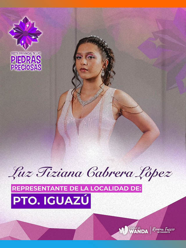 Las aspirantes son: Nahiara Agostina Alcaraz, de Puerto Libertad; Agustina Dávalos, de Wanda; Verónica Esquivel, de Comandante Andresito; Luz Tiziana Cabrera, de Puerto Iguazú; Karen Luján Ocampo, de Puerto Esperanza; Stefany María Ranger, de Eldorado; Antonella Estefanía Torres, de Montecarlo; Milagros Ayelén Velázquez, de Garupá; y Katherine Yanet Villalba, de Puerto Rico.